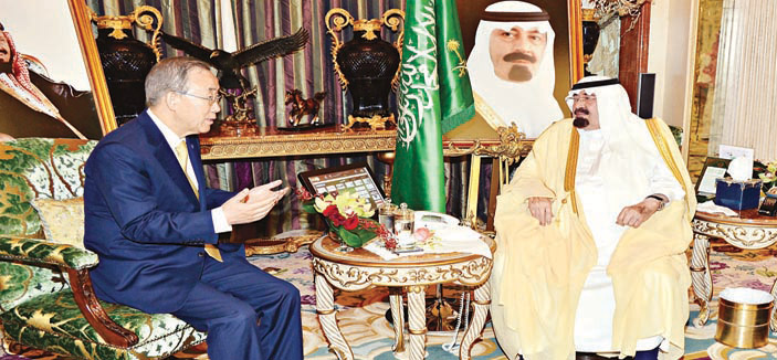 استقبل خادم الحرمين الشريفين الملك عبدالله بن عبدالعزيز آل سعود -حفظه الله- في قصره بجدة مساء أمس معالي الأمين العام للأمم المتحدة بان كي مون والوفد المرافق له. وفي بداية الاستقبال عبر معالي الأمين العام للأمم المتحدة عن سعادته بزيارة المملكة ولقاء خادم الحرمين الشريفين منوهاً بالدعم الذي تلقاه الأمم المتحدة من قبل المملكة. عقب ذلك جرى بحث مجمل الأحداث التي تشهدها الساحتان الإقليمية والدولية وجهود الأمم المتحدة فيها وخصوصاً الأوضاع في غزة.