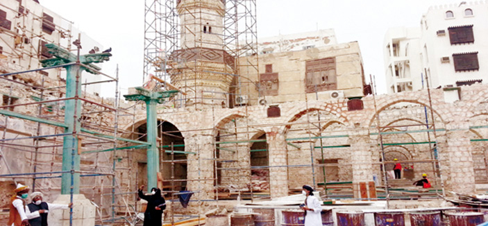 ويجري العمل حالياً على ترميم مسجدي الشافعي والمعمار بمنطقة جدة التاريخية بدعم كريم من خادم الحرمين الشريفين الملك عبدالله بن عبدالعزيز آل سعود -حفظه الله-، ومعلوم أن منارة مسجد الشافعي بُنيت في القرن الـ13 الميلادي، وعمارته التي تتكون من مربع وسطه مكشوف للقيام بعملية التهوية، فيما يعد المسجد أحد أهم المواقع الإسلامية في المدينة، إذ يحكي واقع الإسلام قبل 1400 عام، باستخدامه المواد التقليدية في عملية البناء، والمكونة من: الطين البحري، والحجر المنقبي، والأخشاب، وهي من المواد الأساسية التي كان سكان جدة يعتمدون عليها بحكم طبيعة الأجواء، أما مسجد المعمار فيعود عمره إلى ما بين 300-600 عام، ويقع في شارع العلوي غرباً في محلة المظلوم بجدة التاريخية.كما يجري العمل أيضاً على ترميم مسجد الحنفي في جدة التاريخية بدعم كريم من صاحب السمو الملكي الأمير سلمان بن عبدالعزيز ولي العهد نائب رئيس مجلس الوزراء وزير الدفاع، وهو المسجد الذي كان يصلي فيه الملك عبدالعزيز -رحمه الله.