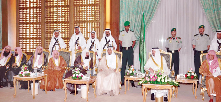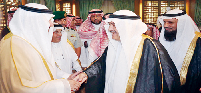 استقبل صاحب السمو الملكي الأمير مشعل بن عبدالله بن عبدالعزيز أمير منطقة مكة المكرمة البارحة الأولى في قصر الضيافة في مكة المكرمة عدداً من المسؤولين والقيادات الأمنية وأعيان المنطقة وأئمة الحرم المكي الشريف، يتقدمهم الرئيس العام لشؤون المسجد الحرام والمسجد النبوي الشيخ الدكتور عبدالرحمن السديس، ومعالي المستشار في الديوان الملكي عضو هيئة كبار العلماء الشيخ الدكتور صالح بن حميد.