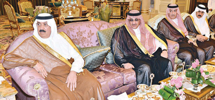 حضر الاستقبال صاحب السمو الملكي الأمير مقرن بن عبد العزيز آل سعود ولي ولي العهد النائب الثاني لرئيس مجلس الوزراء المستشار والمبعوث الخاص لخادم الحرمين الشريفين وصاحب السمو الملكي الأمير خالد بن بندر بن عبد العزيز رئيس الاستخبارات العامة وصاحب السمو الملكي الأمير متعب بن عبد الله بن عبد العزيز وزير الحرس الوطني وصاحب السمو الملكي الأمير محمد بن نايف بن عبد العزيز وزير الداخلية وصاحب السمو الملكي الأمير عبد العزيز بن عبد الله بن عبد العزيز نائب وزير الخارجية ومعالي وزير الدولة عضو مجلس الوزراء الدكتور مساعد بن محمد العيبان.