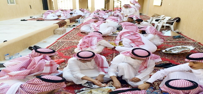 تناول المواطنون في المجمعة وجبة إفطار العيد جماعات، حيث اجتمع سكان كل حي في أحد الميادين وأحضر كل منهم إفطار العيد، وتتنافس الأسر فيما بينها على تقديم الأكلات الشعبية، محافظين بذلك على العادات القديمة للآباء والأجداد حيث تعد مدينة المجمعة من المدن القليلة التي ما زالت تحافظ على هذه العادة، كما أن قصور الأفراح والاستراحات ازدحمت بالمواطنين الذين تناولوا وجبة إفطار العيد مع أسرهم، حيث اجتمع الأقارب الذين حضروا من مناطق مختلفة.
