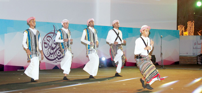 ثلاثة ألوان شعبية لفرقة منطقة جيزان تبهر زوَّار مركز الملك عبدالعزيز التاريخي المشاركة في احتفالات عيد الفطر المبارك بالرياض. تفاعل الزوَّار بالتصفيق، وتعالت أصواتهم مع بدء سماعهم لمذيع الفقرات أن الفقرة القادمة مع فرقة جيزان الشعبية، التي ستؤدي أربعة ألوان شعبية، وهي «رقصة السيف، العزاوي والعرضة».