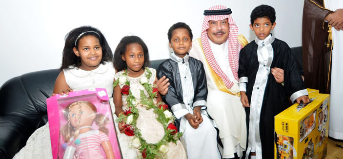 والتقى سموه خلال الزيارة بعدد من نزلاء الدار من الأطفال، حيث هنأهم بالعيد السعيد وقدم لهم باقات الورود والهدايا.