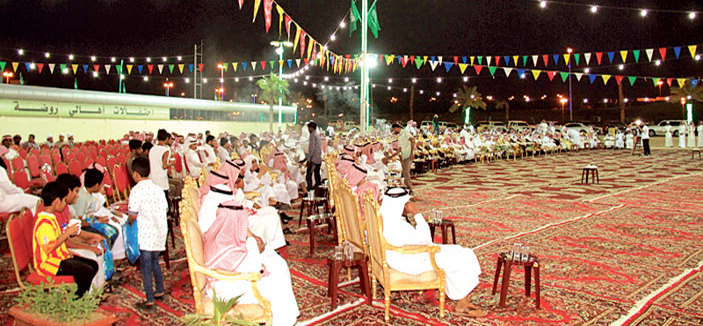 بحضور رئيس مركز روضة سدير الأستاذ خالد بن عبدالله الماضي احتفل مساء أمس الأول الأربعاء أهالي مدينة روضة سدير بعيد الفطر المبارك، وذلك بإقامة حفل رسمي بموقع استراتيجي على طريق الملك عبدالعزيز بجوار حديقة الملك فهد في أجواء من الفرح والبهجة، تحت إشراف لجنة الاحتفالات بروضة سدير. وقد ازدان الموقع بعقود الكهرباء وأعلام الزينة، وظهر الاحتفال بشكل مميز، وأبدع فيه العاملون.