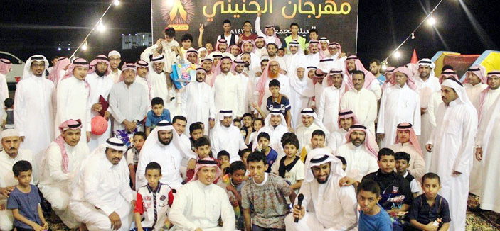 تحت خيمة ضوء يملؤها الحب والوفاء نثر أبناء قرية الحنيني عبق فرحهم بعيد الفطر المبارك من خلال حفل المعايدة الثامن والذي يشكل كل عام علامة فارقة في الجزء الغربي من محافظة صامطة . ويسعى القائمون على الحفل في كل عام إلى ربط الأجيال مع بعضها بعضاً من خلال الاندماج بين كبار السن والشباب والأطفال بعددٍ من الفقرات الممتعة للتعريف بأهم العادات التراثية القديمة والمتمثلة في حوارات مع كبار السن للتعريف بالحياة في الماضي والمقارنة بينها تلك الحياة والصعوبات المعيشية وبين ما يعيشه الجميع حالياً من نعمة الأمن والأمان والاستقرار في ظل حكومتنا الرشيدة وعلى رأسهم خادم الحرمين الشريفين الملك عبدالله بن عبدالعزيز - حفظه الله - وسمو ولي عهده وسمو ولي ولي العهد.