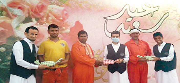 في بادرة اجتماعية نبيلة قام عددٌ من شباب ملتقى إسهام التطوعي بمحافظة ضمد التابعة لمنطقة جازان بمعايدة عمال النظافة المنتشرين بكل أنحاء المحافظة، هنؤوهم من خلالها بعيد الفطر وأهدوا إليهم حلوى العيد وبطاقات الشحن ليتواصلوا مع أقربائهم خارج المملكة، وقد أدخلت تلك المعايدة الفرحة والسعادة على قلوب تلك العمالة، وأكّد منسق المشاريع بملتقى «إسهام» أحمد العقيلي، أن قيام شباب الملتقى بهذه المعايدة هو واجب ديني ووطني واجتماعي مقدراً وكل المشاركين في المعايدة جهود العمالة في قيامهم بواجبهم في أيام العيد بعيداً عن ذويهم .