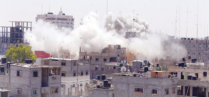 وإلى جانب هذا كلّّه نرى دماء أشقائنا في فلسطين تسفك في مجازر جماعية، لم تستثن أحدًا، وجرائم حرب ضد الإنسانيَّة دون وازع إنساني أو أخلاقي، حتَّى أصبح للإرهاب أشكالاً مختلفة، سواء كان من جماعات أو منظمات أو دول وهي الأخطر بإمكاناتها ونواياها ومكائدها، كل ذلك يحدث تحت سمع وبصر المجتمع الدولي بكلِّ مؤسساته ومنظماته بما في ذلك منظمات حقوق الإِنسان، هذا المجتمع الذي لزم الصمت مراقبًا ما يحدث في المنطقة بأسرها، غير مكترث بما يجري، وكأنما ما يحدث أمر لا يعنيه، هذا الصمت الذي ليس له أيّ تبرير، غير مدركين بأن ذلك سيُؤدِّي إلى خروج جيل لا يؤمن بغير العنف، رافضًا السَّلام، ومؤمنًا بصراع الحضارات لا بحوارها.