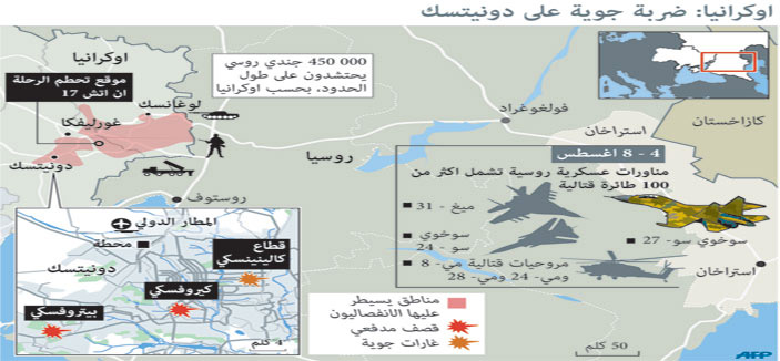 وقالت بلدية دونيتسك: إن القذائف أصابت حي كيفسكي في شمال غرب المدينة. ولم يصب أيّ مبنى سكني في شكل مباشر ولم يسجل سقوط ضحايا ولكن العديد من النوافذ تحطمت وفق ما أوضح المصدر نفسه في بيان. والهجوم الذي تشنه القوات الأوكرانية منذ أربعة أشهر يتركز على المعاقل الرئيسة للانفصاليين وخصوصًا دونيتسك، كبرى مدن حوض دونباس المنجمي حيث وصلت المعارك في الأيام الأخيرة إلى وسط المدينة.