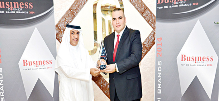 وتسلم الأستاذ بدر بن خلف الشمري الرئيس التنفيذي للشركة الجائزة التقديرية من الأستاذ محمد حميد مدير عام ورئيس تحرير مجلة «بيزنس كورنر الاقتصادية».