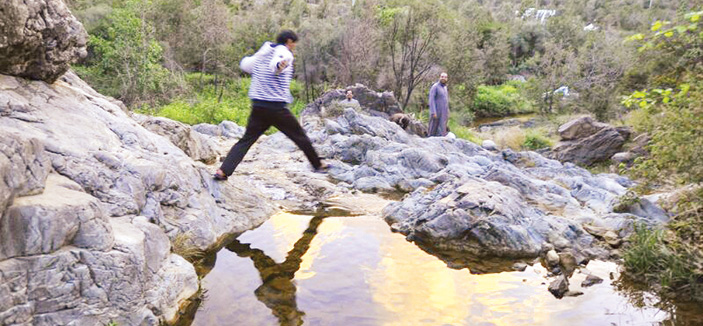 يلفت نظر الزائر لمنطقة الباحة هذه الأيام شلالات المياه الصافية التي تنحدر من أعالي جبال خيرة بمحافظة بني حسن، على شكل شرايين جبلية، تتسارع في تدفقها إلى أن تحل في بئر القلت بوسط غابة الزرائب. وأعادت الأمطار الغزيرة التي تشهدها منطقة الباحة التوهج لهذه الشلالات؛ لتزيد المكان روعة وجمالاً، يُضاف إلى ما تتمتع به مختلف محافظات ومراكز الباحة من مقومات سياحية جذابة، وُلدت من أصل طبيعتها البكر، وأهّلتها أن تكون مقصداً للسيَّاح من داخل المملكة وخارجها. وقد رسم انسياب المياه وهي تخترق الصخور والأغصان وأوراق الشجر لوحة جمالية من الطبيعة. ويُدخل هذا المنظر البهيج على الجميع المتعة والسرور.