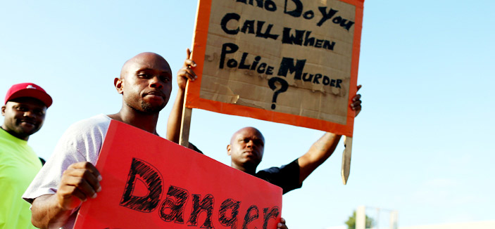 وافاد عن اصابة متظاهرين اثنين على الاقل بالرصاص بدون ان يحدد عدد الاعتقالات في مدينة ميزوري (وسط). وقبل بضع ساعات من دخول حظر التجول حيز التنفيذ مساء الاحد اصيب شخص بالرصاص وتعرضت الشرطة لاطلاق نار وزجاجات حارقة. وتابع جونسون قائد شرطة المرور المكلف ارساء النظام بعد سحب هذه المهمة من الشرطة المحلية للتخفيف من حدة التوتر، انه قبيل الساعة التاسعة توجه مئات المتظاهرين الى مركز قيادة الشرطة والقوا مقذوفات على الشرطيين. واضاف «انطلاقا من هناك لم يكن امامي من خيار سوى رفع مستوى ردنا». وقامت الشرطة في نهاية الامر بتفريق المتظاهرين ومعظمهم من الشبان، مستخدمة الغازات المسيلة للدموع ومستعينة في تقدمها بآليات مدرعة.