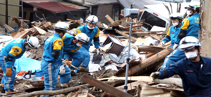 أعلن فرق الإنقاذ ووسائل الإعلام اليابانية أمس الأحد أن عشرات من حوادث انزلاق التربة التي وقعت هذا الأسبوع في هيروشيما جنوب غرب اليابان أدت إلى مقتل خمسين شخصاً بينما ما زال 38 شخصاً آخرين مفقودين على الرغم من جهود فرق الإغاثة. ويعمل حوالي ثلاثة آلاف شخص من المنقذين المحترفين يساعدهم عدد كبير من المتطوعين في البحث عن المفقودين أو الناجين لكن حصيلة الضحايا تواصل ارتفاعها. وليل السبت الأحد واصل نحو 1300 من رجال الإغاثة العمل وإن كان الأمل في العثور عن ناجين يتضاءل بعد أربعة أيام على وقوع الكارثة. وبدأت الأمطار تهطل مجدداً حوالي الساعة الثالثة من الأحد (18,00 تغ من السبت) مما أدى إلى تعليق العمليات لتجنب كارثة ثانية. ولم تستأنف جهود البحث حتى الآن صباح أمس الأحد.