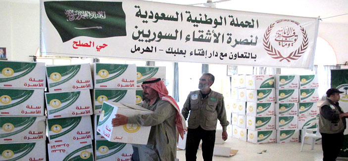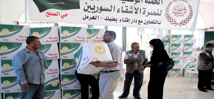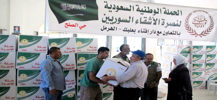 بدأت الحملة الوطنية السعودية لنصرة الأشقاء السوريين من خلال مكتبها في لبنان أمس مرحلة توزيع الحصص الغذائية على النازحين السوريين في لبنان وذلك في المحطة الأولى بمنطقة بعلبك.