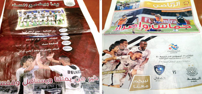 حفزت الصحافة القطرية الصادرة صباح أمس الاثنين جماهير ولاعبي فريق السد قبل مواجهته الحاسمة أمام الهلال السعودي. وأفردت صحيفة الوطن الصفحة الأولى لملحقها الرياضي كاملة للقاء، وشحذت همم اللاعبين بعنوان (حماس وإصرار). وجاء في النصف الثاني للصفحة إعلان من الشريك الرسمي للسد (فودافون)، وضع فيه عبارات تحفيزية للجماهير، منها (نبيكم معنا) و(كلنا السد في لقاء الرد). كما قام نادي السد بوضع إعلان صفحة كاملة في الصحيفة ذاتها تحفيزاً للجماهير، وضع فيه معلومات المباراة، بعنوان عريض (يداً بيد مع السد). هذا، وقد تناقلت العديد من الصحف عناوين مماثلة وصوراً تحفيزية للاعبين وعبارات تشجيعية. وقد وضعت صحيفة (الشرق) عنواناً هو (السد يتأهب للمواجهة الحاسمة أمام الهلال السعودي). وقد ركز كتاب صحيفة الشرق على أهمية اللقاء؛ فقد عنون الزميل إبراهيم فلامزري مقاله بعنوان (السد: مباراة باسم وطن). وقد حث الكاتب إدارة النادي على إعداد اللاعبين، وكذلك طالب الأندية الأخرى بأن تقف مع السد ولو بإرسال روابط المشجعين.. كما جاء عنوان مقال الزميل صالح الحامد في الصحيفة نفسها (كلنا السد في لقاء الرد). وقد تحدث الكاتب عن مشاكسات تويتر بين جماهير الفريقين، وذكّر الكاتب بأن السد بطل آسيا 2011، وطالب بعودة تسونامي - كما وصفهم - في تلك البطولة.