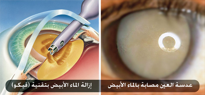 الأسلوب الأحدث في جراحات الماء الأبيض هو استخدام الموجات فوق الصوتية لتفتيت وشفط الماء الأبيض من خلال جرح صغير باستخدام ما يُسمى بجهاز (الفيكو) مع زرع العدسات القابلة للطي التي تتيح للطبيب الجراح إجراء الجراحة من خلال جرح قد لا يتعدى 1.8 ملليمتر ولا يحتاج إلى أي غرز جراحية.