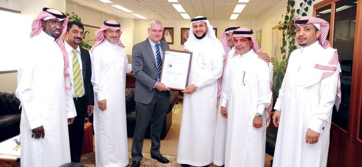 وتسلّم الدكتور عبدالعزيز بن محمد السويلم نائب رئيس المدينة لدعم البحث العلمي شهادة الآيزو من المدير الفني لشركة ايزوكر العالمية ببريطانيا ستيفن ستابلي، بحضور المشرف على وحدة تقنية المعلومات محمد بن عبدالله المسعود وعدد من المسؤولين.