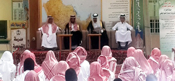 قام محافظ القويعية عبدالله الربيعة، يرافقه مدير التربية والتعليم سعد المطوع، ومدير الإشراف عبد الرحمن الشافي، بزيارة لعدد من مدارس المحافظة للوقوف على بدء الدراسة وانتظامها. وألقى من خلالها محافظ القويعية كلمة سمو أمير منطقة الرياض صاحب السمو الملكي الأمير تركي بن عبدالله بن عبدالعزيز، الموجهة للمعلمين والمعلمات والطلاب والطالبات وأولياء الأمور على أربع مدارس شملتها الزيارة نقل من خلالها تهاني أمير المنطقة لهم بمناسبة بدء العام الدراسي الجديد. وشدد فيها على أهمية دور المعلم في صناعة الأجيال وعن أهمية طلب العلم والتحلي بالأخلاق الحسنة، فشباب اليوم هم رجال الغد وعماد الوطن في المستقبل. وأكد على أولياء الأمور متابعة أبنائهم وتوجيههم لما فيه صلاحهم.