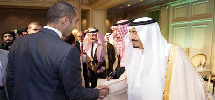 وفور وصول سمو ولي العهد صافح سموه الطلبة.