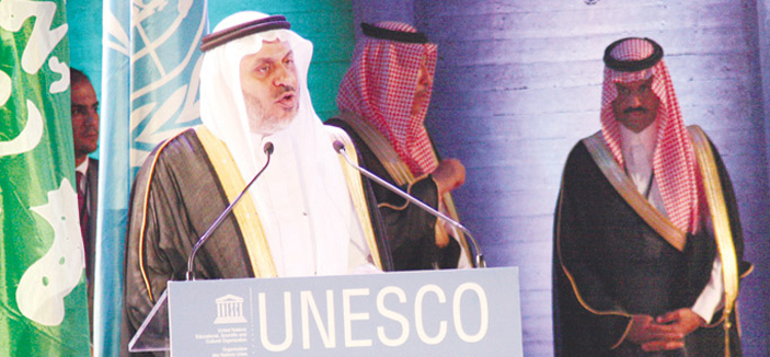 لا يفوتني أن أعبّر عن امتنان المملكة لما تحقق خلال السنوات القليلة الماضية من النجاح في توثيق العلاقة بينها وبين اليونسكو في كافة اختصاصات المنظمة، وأخص بذلك، تسجيل مواقع: مدائن صالح، والدرعية القديمة، ومؤخراً جدة التاريخية في لائحة التراث العالمي.