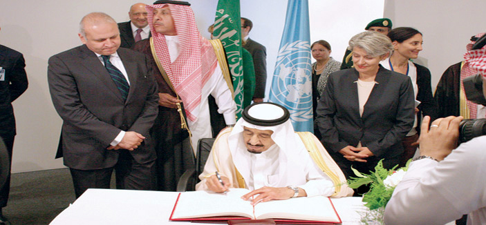 لم تكن المملكة العربية السعودية غائبة عن اليونسكو منذ نشأتها، إذ وقّعت على ميثاقها التأسيسي، واستمرت العلاقة معها حتى اليوم، حيث يولي خادم الحرمين الشريفين الملك عبد الله بن عبد العزيز اهتماماً كبيراً بتعزيز ثقافة الحوار بين أتباع الأديان والثقافات، حيث بادر - حفظه الله - بإنشاء مركز الملك عبدالله بن عبدالعزيز العالمي للحوار بين أتباع الأديان والثقافات، وذلك من منطلق المبادئ والقيم الإسلامية المتمثلة في التسامح والاعتدال والحوار ونبذ العنف.