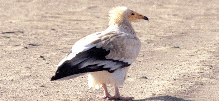 ثالثاً / الرخمة المصرية (النسر المصري، الأنوق، العليا) واسمه الإنجليزي Egyptian Vulture واسمه العلمي (Neophron percnopterus): من الطيور المعروفة عند العرب وتسمى الأنوق وتكنى عند العرب قديماً بأم جعران وأم قيس وأم كثير، ويتميز البالغ منها بلونه الأبيض وأطراف أجنحة سوداء وبمنقار ووجه أصفر وسواد بمقدمة المنقار ويختلف لون الفرخ في سنته الأولي والثانية حيث يتميز بلونه الأسود، ويصل وزن البالغ بين 1600-2200جرام وهو ينتشر في معظم مناطق المملكة، كما يتواجد أيضاً في بعض الجزر بالبحر الأحمر كمحمية جزر فرسان. وتعشش هذه الطيور في أعالي المنحدرات الجبلية، ويبدأ تكاثر هذه الطيور مع شهر ديسمبر ويبني عشه من أغصان الأشجار وتضع الأنثى بيضة واحدة ونادراً جداً ما تضع بيضتين ويحضن البيض قرابة 42 يوما، وتصل الفراخ لسن الطيران وعمرها بين 70-85 يوماً وتبقى بجوار العش لتحصل على غذائها من والديها قرابة الشهر قبل أن ترحل بعيداً لتعتمد على نفسها، وتصل هذه النسور لسن بين سن الرابعة والخامسة. والرخمة المصرية تناقصت أعدادها حول العالم بشكل كبير خلال العقدين الماضيين حتى أن الاتحاد العالمي وضعها ضمن الأنواع المهددة بالانقراض بشكل خطر.