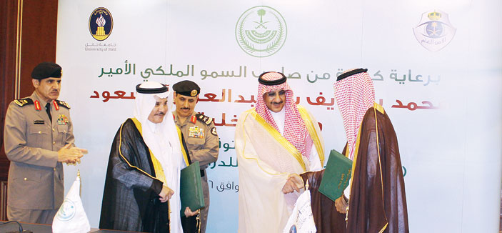 رعى صاحب السمو الملكي الأمير محمد بن نايف بن عبدالعزيز وزير الداخلية في مكتب سموه بالوزارة في الرياض، مراسم تدشين كرسي الأمير محمد بن نايف بن عبدالعزيز للدراسات الأمنية في جامعة حائل، ووقع اتفاقية إنشاء الكرسي معالي مدير الجامعة الدكتور خليل بن إبراهيم البراهيم، ومعالي مستشار سمو وزير الداخلية الدكتور ساعد العرابي الحارثي.