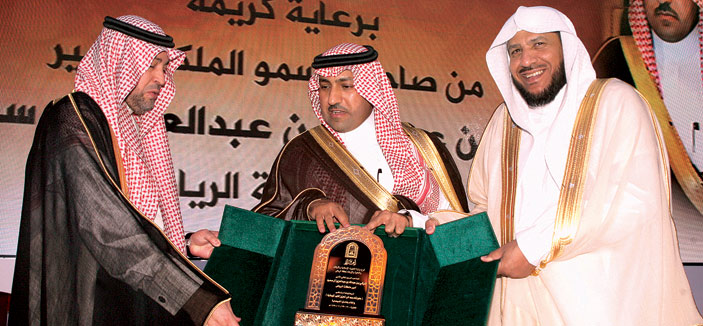 عقب ذلك قدم مدير فرع الوزارة بالرياض الشيخ عبد الله بن عبد العزيز الناصر درعاً تذكارياً لسمو أمير منطقة الرياض.