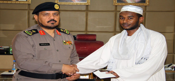 نيابة عن مدير الامن العام اللواء عثمان المحرج، كرم مدير شرطة منطقة القصيم اللواء بدر الطالب، مقيماً من الجنسية السودانية لأمانته وحسه الامني، حيث أعاد مبلغا ماليا كبيرا عثر عليه في أحد الطرق ببريدة. وقد سلمه اللواء الطالب شيكا بمبلغ مالي مع شهادة شكر وتقدير.