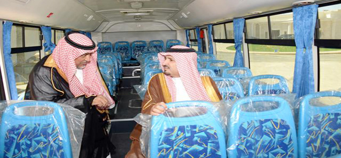 كما اطلع سموه على نموذج من أسطول حافلات النقل المدرسي الجديد للطلاب والطالبات, التي يصل عددها لـ 400 حافلة.