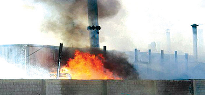 تمكنت فرق الدفاع المدني من السيطرة على حريق اندلع في مصنع الأغذية بمدينة حائل وذلك صباح أمس الأربعاء حيث تبلغت عمليات الدفاع المدني بمدينة حائل عن حادث حريق داخل المدينة الصناعية الثانية على طريق القصيم وجرى انتقال فرق الإطفاء والإنقاذ تساندها عدد من الجهات الأمنية والإسعافية للموقع وذكر الرائد نافع المخلفي الناطق الإعلامي لمديرية الدفاع المدني بأنه عند الساعة 7:33 من صباح الأربعاء باشرت فرق الدفاع المدني مصنعاً في المدينة الصناعية الثانية اتضح بأن الحريق في غلاية زيت بسعة تقدر بثلاثة آلاف لتر داخل حرم أحد المصنع, وأدى انفجارها إلى حدوث حريق بالموقع تعاملت معه فرق الإطفاء وتم إخماده خلال عملية دامت قرابة الساعة ولم يصب أحد بأذى جراء الحادث, وتولت جهة التحقيق بالدفاع المدني مهامها لكشف مسببات الحريق.