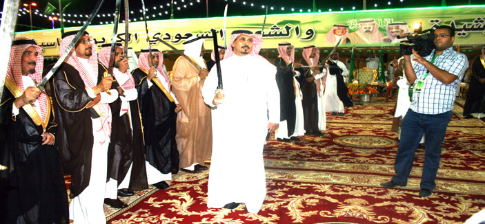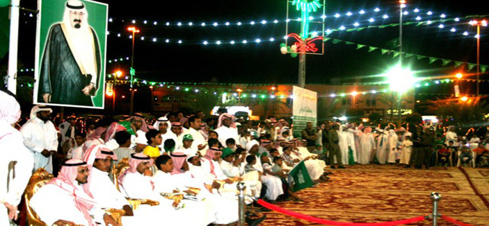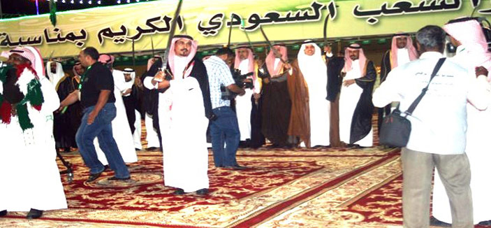 تلا ذلك قصيدة شعرية تحاكي هذه المناسبة للشاعر سعود الحافي لفتت أنظار الحضور, ثم أوبريت يا موطني من إعداد إدارة التعليم، فقصيدة وطنية بعنوان سيرة بطل للشاعر خلف بن حصيبان نالت كذلك إعجاب الحاضرين، بعدها تفضّل مساعد مدير التعليم الأستاذ عبدالله السبيعي بالسحب على الجوائز المقدمة من بعض الشركات والمؤسسات التجارية بالمحافظة، فعرض مرئي للحملة الوطنية الشاملة (وطننا أمانة)، بعدها شيلات شعرية معبّرة عن الوطن للشاعر عبدالعزيز البيز نالت استحسان الجمهور، ليأتي بعد ذلك دور صنوف العرضة السعودية والتي أبدع فيها المحافظ وشارك فيها الكثير من الحضور لما تشتمله من معاني حماسية، ثم إطلاق الألعاب النارية بأشكالها وألوانها المختلفة، حيث كان تفاعلاً مشهوداً وإعداداً مشرّفاً واحتفاءً بهيجاً معبّراً بجلاء عن أصدق مشاعر الانتماء للوطن، التقت خلاله (الجزيرة) مسؤولين وأكاديميين ومواطنين كثر وألسنهم لاهجة لله حامد وشاكرة، وداعية المولى القدير لمن كان سبباً في تلك النعماء التي يعيشها الوطن منذ تأسيس كيانه وحتى وقتنا الحاضرالزاهر، فقد تحدث مدير التربية والتعليم الأستاذ عبدالعزيز المسند قائلاً: إن ذكرى اليوم الوطني في عامه الرابع والثمانين لتوحيد المملكة العربية السعودية على يد الملك المؤسس عبدالعزيز بن عبدالرحمن آل سعود -طيب الله ثراه- أعزّ وأغلى ذكرى تتكرر علينا كل عام، فهي غالية على قلب كل مواطن يستظل بمظلة هذا الكيان الشامخ ويعيش في رغد وفي دوحة آمنة مطمئنة يتذكر من خلال هذه المناسبة ملحمة الكفاح ومسيرة البناء التي بدأها المؤسس وواصلها أبناؤه البررة من بعده.