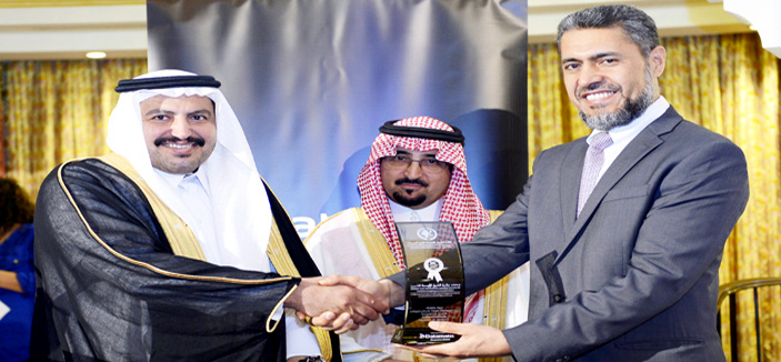 جرى ذلك في احتفال تكريمي أقيم بهذه المناسبة في دبي بفندق برج العرب يوم الخميس الماضي بحضور شخصيات خليجية وإقليمية وعالمية من بينها منسق المقيم للأمم المتحدة سيد آغا وأمين أمانة محافظة الطائف المهندس محمد بن عبدالرحمن المحرج ومؤسسات حكومية سعودية وخليجية ودولية.