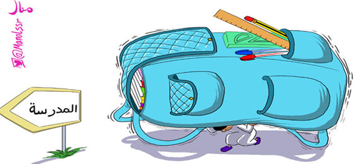 اطلعت على رسمة كاريكاتورية للأخت منال في زاوية الكاريكاتير، حيث صوّرت الحقيبة المدرسية الثقيلة، وتعليقاً على الكاريكاتور أقول: