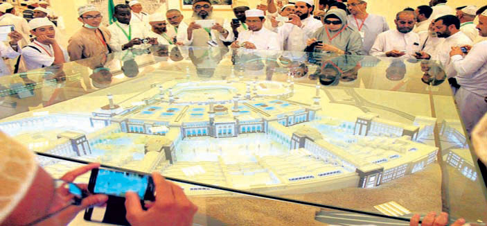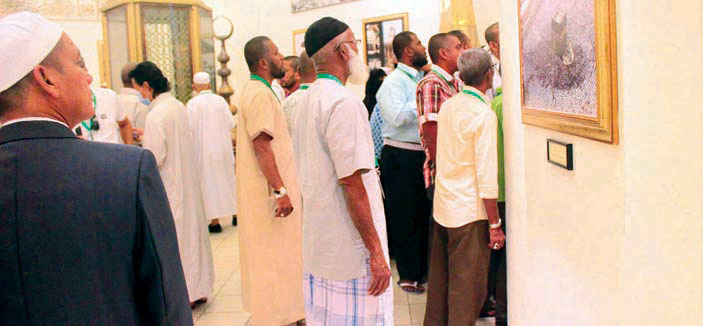 وشاهد الضيوف مجسمي الحرمين الشريفين، وعددًا من المقتنيات المختلفة من مخطوطات ونقوش كتابية وقطع أثرية ثمينة ومجسمات معمارية وصور فوتوغرافية نادرة، كما شاهدوا الصور الفوتوغرافية للحرمين الشريفين، ومقتنيات الحرمين القديمة والحديثة وبئر زمزم وباب الكعبة المشرفة.