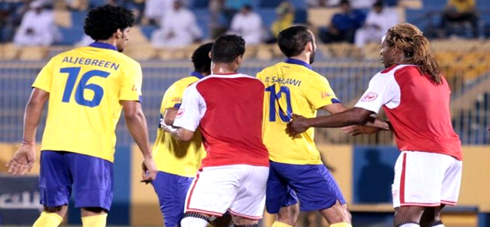 تقاسم الهداف محمد السهلاوي والبولندي أدريان هدفي المباراة التي جاءت بالتساوي على مدار الشوطين. وكان مدرب النصر كانيدا قد دخل اللقاء في غياب خمسة عناصر مرتبطة بالمنتخب الأول بالإضافة لارتباط البحريني محمد حسين بمنتخب بلاده وعدم اكتمال جاهزية إبراهيم غالب الذي يتعافى بعد جراحة خضع لها في أصبع القدم الأسبوع الماضي. شهدت المباراة مشاركة عديد الأسماء النصراوية التي غابت عن تمثيل الفريق في الفترة الماضية أبرزهم البرازيلي ماركينيوس في حين تعرض المدافع الأيمن كامل المر لإصابة في الشوط الأول ودخل بدلا عنه إبراهيم الزبيدي.