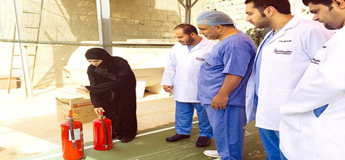 أقام مستشفى أدمة بمنطقة الرياض دورة تدريبية على كيفية استخدام طفايات الحريق، مستهدفاً بذلك العاملين و العاملات و كافة منسوبي المستشفى من الأطباء و رؤساء الأقسام و تم التعريف بواجبات الاداريين و الفنيين و فرق الصيانة و التمريض حول أخطار الحريق وكيفية الوقاية منه والتصرف عند اندلاعه.