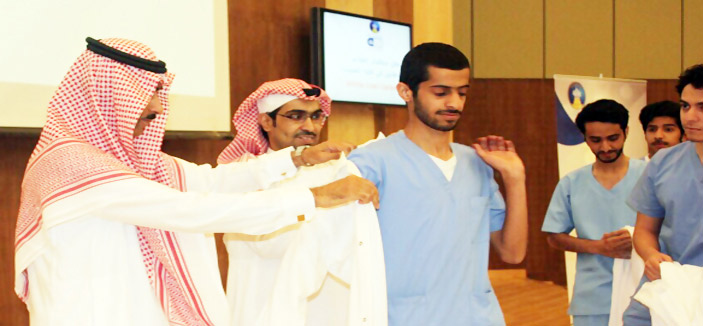 كما قلّد معالي مدير الجامعة طلاب الدفعة الثانية لكلية الصيدلة معاطفهم البيضاء، وهو تقليد سنوي لدى كليات الصيدلة يسمى بـ «المعطف الأبيض» يقام أثناء اللقاء التحضيري للطلبة الجدد وأداء قسم طالب الصيدلة، وقد حضر الحفل وكلاء الجامعة وبعض عمداء الكليات في الجامعة. من جهته اعتبر البراهيم، أن قبول الطالب في كلية الصيدلة يعني بالضرورة تفوقه في السنة التحضيرية، التي تعتبر محكا رئيسيا للطالب الجامعي الآن، مهنئا الطلاب على الالتحاق بهذا التخصص النوعي.