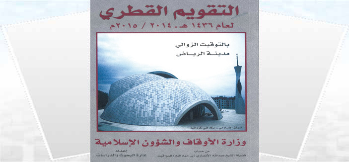كعادته السنوية أهدى الباحث والمهتم بالثقافة والتراث والتاريخ الأستاذ عبد اللطيف النعيم صحيفة الجزيرة، مجموعة من التقاويم السنوية بالتاريخ الهجري وهو (التقويم القطري المعروف) الذي يقدم مواعيد دخول الفصول والأنواء ومواعيد الزراعة للنباتات المختلفة، خدمة للمزارعين في المملكة والوطن العربي ومواعيد الصلاة في كافة مدن المملكة ودول الخليج والدول العربية.