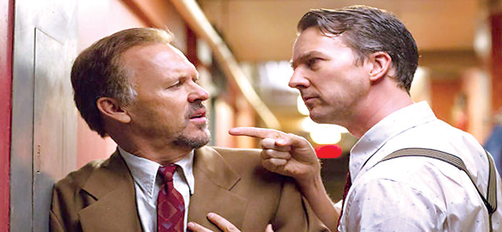 بذكاء وعمق شديدين يقدم سيناريو الفيلم صعوداً قوياً في نفسية البطل عندما يقدمون عدة عقبات أمامه قد تهدد نجاح مسرحيته والتي يعمل عليها كممثل، كاتب، ومخرج. الصراع الدائم بينه وبين أحد النقاد المشاهير في نيويورك أحدث للفيلم قيمة على مستوى بناء الشخصيات، العلاقة غير الودية بينه وبين أحد النجوم في مسرحيته، أعطت للفيلم قوة ثلاثية الأبعاد في القراءة النفسية للشخصيات، بالإضافة إلى أخطائه المتعددة، وتخبطاته غير المحمودة النتائج تجعلنا جميعاً نترقب كيف سيكون مستوى أداء مسرحيته في الثلث الأخير من الفيلم.