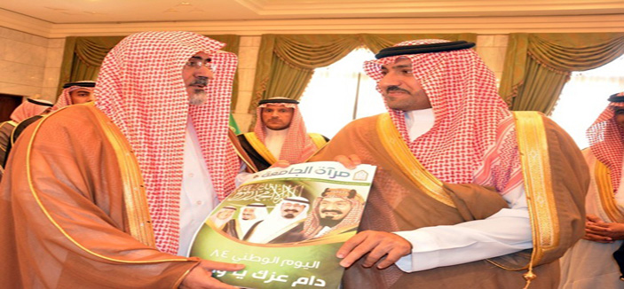 جاء ذلك خلال استقبال سموه لمعالي مدير الجامعة الأستاذ الدكتور سليمان بن عبدالله أبا الخيل واطلاعه على مجموعة من أعداد الصحيفة الخاصة باليوم الوطني وكذلك العدد الخاص بمنح الجامعة شهادة الدكتوراه الفخرية لخادم الحرمين الشريفين - حفظه الله - في تخصص «العلاقات الدولية وتحقيق مبادئ الأمن والسلام»، حيث وجه سموه بتوزيع صحيفة «مرآة الجامعة» على مرافق الإمارة.