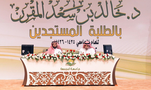 التقى مدير جامعة المجمعة الدكتور خالد بن سعد المقرن بالطلبة المستجدين بالجامعة وذلك بمسرح المدينة الجامعية وبحضور وكلاء الجامعة وعمداء الكليات والعمادات المساندة ومدراء الإدارات وطلاب كليات الجامعة المستجدين وقد تم نقل اللقاء الذي نظمته عمادة شؤون الطلاب للطالبات عبر الشبكة التلفزيونية، بدأ اللقاءُ بافتتاحيةٍ ترحيبيةٍ من مقدم الحفل بمدير الجامعة والحضور بعد ذلك ألقى عميدِ شؤونِ الطلابِ الدكتور حمد بن عبدالله القميزي كلمةً رحََّب فيها بمدير الجامعة ووكيل الجامعة للشؤون التعليمية والحضور والطلبة المستجدين وأوضح حرص عمادة شؤون الطلاب على تحقيق الأهداف المرسومة لها من خلال الأنشطة والبرامج المختلفة داخل وخارج الجامعة والخدمات التي تقدمها للطلبة جميعهم وأشار إلى أنَّ العمادةَ تسير وفق رؤية الجامعة ورسالتها وأهدافها وتطلعاتها وتحظى بشكلٍ خاصٍّ بالتوجيهات السديدة والرعاية والمتابعة المستمرة من معالي مدير الجامعة حيث تضع خططها الإستراتيجية وخططها التنفيذية من هذه المنطلقات، وتنفذ برامجها وأنشطتها وخدمتها, واضعةً نصب عينيها تحقيق الجودة والتميز والتفوق عاماً بعد عام. بعد ذلك ألقى مدير الجامعة كلمةً بدأ فيها بشكر الله سبحانه وتعالى أولاً وأخيراً بما تفضل به من نِعَمٍ لا تعدُّ ولا تحصى، ومن ثم قدََّم الشكرَ لخادم الحرمين الشريفين الملك عبدالله بن عبدالعزيز ولصاحب السمو الملكي الأمير سلمان بن عبدالعزيز ولي عهده ونائب رئيس مجلس الوزراء ووزير الدفاع على ما وفروه من إمكانياتٍ هائلةٍ وكبيرةٍ في كل مجالات الحياة وبالأخص التعليم العالي والتي تجني ثماره الجامعة، كما ذكر أنَّ للطالب حقوقا وعليه واجبات، وأوصى أبناءه الطلاب وبناته الطالبات ببر الوالدين، والسعي إلى التحصيل العلمي، والتفرغ للدراسة، وحسن اختيار الرفقة الصالحة، واعتبر جميع الطلاب والطالبات سفراءَ للجامعة وفي ختام كلمته شدَّد بأن هذا اللقاء لا ينتهي بانتهاء فقراته، إنما التواصل بينه وبين أبنائه الطلاب والطالبات مستمر، فأبوابه مفتوحة لجميع منسوبي وطلبة الجامعة وفي أي وقت، كما ذكر بأن جميع مسؤولي الجامعة - باختلاف مناصبهم- أبوابهم أيضاً مفتوحة، ولن يُسْمَح لأي كائن من كان بإغلاق بابه، وأنهم بهذه السياسة يحققون جزءاً من الشراكة مع الطلاب والطالبات بالتماس همومهم ومشاكلهم، ومن ثم المساهمة في حلها، وأكد أن الملاحظات تصل وتجاهتماما, وتُتَّخَذُ الإجراءات لعلاجها, ووجه أبناءه الطلاب بالحذر من الانسياق خلف الأفكار المنحرفة والفئات الضالة التي تسعى لتدمير هذا البلد وزعزعة أمنه وأمانه وقال إن مسؤولية تحقيق الأمن في هذا الوطن تقع على عاتق المواطنين فعليهم أن يكونوا أوفياء مع وطنهم وقادتهم من خلال الدفاع عنه بعد ذلك أجاب على استفسارات الطلاب والطالبات التي وصلت عبر مواقع التواصل الاجتماعي والواتس آب والأسئلة المباشرة بكل وضوح وشفافية وفي نهاية اللقاء تم السحب على الجوائز المقدمة من عمادة شؤونِ الطلابِ للحضور.