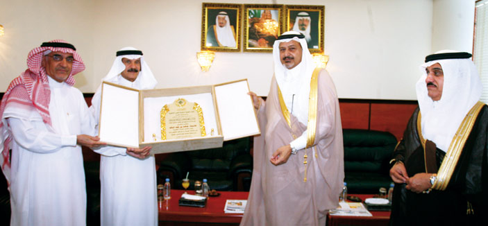 وفي نهاية اللقاء قدَّم الأمير فيصل درعاً تكريمياً لرئيس التحرير ومجموعة من إصدارات الجمعية.