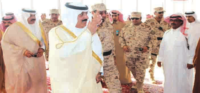 تفقد صاحب السمو الملكي الأمير متعب بن عبدالله وزير الحرس الوطني أمس مقر الفوج الأربعين التابع لوزارة الحرس الوطني في محافظة بقيق بالمنطقة الشرقية. وكان في استقبال سموه لدى وصوله المقر أمير الفوج فيصل بن محمد بن شريم المري، وعدد من قيادات ومنسوبي الفوج. وقد أقيم حفل خطابي بهذه المناسبة بدأ بتلاوة آيات من القرآن الكريم, ثم ألقى أمير الفوج كلمة رحب فيها بسمو وزير الحرس الوطني ومرافقيه، منوهاً بجهود سموه ومتابعته لجميع قطاعات ووحدات الحرس الوطني في مختلف المناطق، وحمد الله عز وجل على النعم التي حباها لهذه البلاد التي من أهمها نعمة الإسلام والأمن والأمان، مؤكداً بأن الفوج على أتم الاستعداد ورهن إشارة القيادة - أيدها الله - لمواجهة أي عدوان أو خطر يهدد أمن واستقرار هذا الوطن الغالي، سائلا الله تعالى أن يحفظ خادم الحرمين الشريفين الملك عبدالله بن عبدالعزيز آل سعود، وسمو ولي العهد الأمين، وسمو ولي ولي العهد - حفظهم الله - وأن يحفظ بلادنا الغالية ويديم عليها نعمة الأمن والأمان. بعد ذلك ألقى عدد من منسوبي الفوج قصائد رحبوا خلالها بسمو وزير الحرس الوطني.