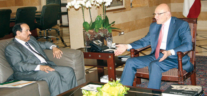 التقى دولة رئيس مجلس الوزراء اللبناني تمام سلام في بيروت امس معالي سفير خادم الحرمين الشريفين لدى لبنان علي بن سعيد بن عواض عسيري. وجرى خلال اللقاء استعراض العلاقات الثنائية بين البلدين الشقيقين. وأوضح معاليه عقب اللقاء أن «المملكة العربية السعودية كانت وستبقى إلى جانب لبنان ومواقف خادم الحرمين الشريفين الملك عبد الله بن عبد العزيز آل سعود ـ حفظه الله ـ تعبر عن مدى اهتمامه وحرصه على لبنان واستقراره. كما التقى الرئيس اللبناني الاسبق أمين الجميل في بيروت اليوم معالي سفير خادم الحرمين الشريفين لدى لبنان علي بن سعيد عواض عسيري. وتم خلال اللقاء بحث الامور ذات الاهتمام المشترك.
