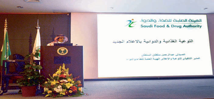 وقدم المدير التنفيذي للتوعية والإعلام بالهيئة الصيدلي عبدالرحمن بن سلطان السلطان، ورقة عمل موسعة حول تجربة الهيئة في التوعية الغذائية والدوائية، عبر وسائط الإعلام الجديد، تناول فيها الأسس العلمية لبرامج التوعية المتخصصة والعامة التي تقوم بها الهيئة، وعملها على استثمار نقاط القوة في كل من وسائل الإعلام التقليدي والجديد على حدٍ سواء.