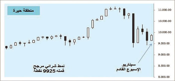 الأسبوع القادم من المرجح أن يكمل المؤشر العام ارتداده إلى مستوى 9925 نقطة ويغلق على نمط شرائي عاكس للاتجاه عند مستوى 9877 نقطة لكن ستظل الحيرة مستمرة، أما بالنسبة لسهم موبايلي فقد يكون قاع التصحيح له على الأقل للأسبوع القادم عند مستوى 55 ريالاً وبذلك يكون قد وصل مكرر ربحية دون مكرر ربحية قطاعه، أما السيولة وفق الحركة الفنية قد تتركز في أسهم المضاربة حتى يستقر السوق ويدرج الضيف الجديد.