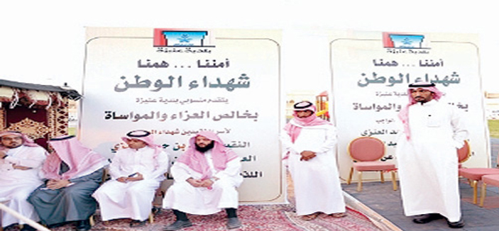 قام وفد من أهالي محافظة الرس يتقدّمهم المحافظ الأستاذ محمد بن عبدالله العساف بزيارة إلى محافظة عنيزة لتقديم واجب العزاء لأسرة الفقيد النقيب محمد بن حمد العنزي والذي نالته يد الغدر والإرهاب وهو يدافع عن وطنه ودينه ومليكه في حي المعلمين في مدينة بريدة, وقدّم المحافظ تعازي أهالي المحافظة عامة ودعوا العلي القدير أن يتغمد الفقيد بواسع رحمته ويسكنه فسيح جناته ويلهم أهله وذويه الصبر والسلوان, منوهين ومستنكرين هذه الأعمال الإرهابية, وتحدث المحافظ عن شجاعة النقيب ووفاءه وإخلاصه لوطنه وهو يقوم بواجبه الأمني وكان الوفد الذي غادر الرس عصر أمس الأول يضم أكثر من أربعين من أهل الرس في الحافلة الخاصة بالأهالي ورافق الزيارة عدد من مسئولي الدوائر الحكومية ورجال الأعمال والأعيان والإعلام يتقدّمهم رئيس البلدية المهندس صالح الصغير ورئيس المجلس البلدي الأستاذ محمد الخليفة وأعضاء المجلس ورجل الأعمال الشيخ ضيف الله الصالحي وعضو مجلس منطقة القصيم سابقاً الشيخ صالح عبدالعزيز الغفيلي ومدير التعليم سابقاً الأستاذ محمد الغفيلي ورجل الأعمال الشيخ صالح ناصر العوفي وأمين الغرفة التجارية الأستاذ خالد الحناكي.