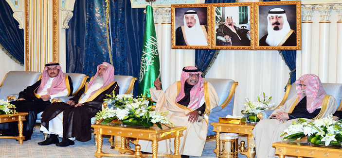 استقبل صاحب السمو الملكي الأمير مقرن بن عبد العزيز آل سعود ولي ولي العهد النائب الثاني لرئيس مجلس الوزراء المستشار والمبعوث الخاص لخادم الحرمين الشريفين - حفظه الله - في قصر سموه بالرياض أمس سماحة مفتي عام المملكة رئيس هيئة كبار العلماء وإدارة البحوث العلمية والإفتاء الشيخ عبدالعزيز بن عبدالله آل الشيخ، وأصحاب الفضيلة العلماء والمشايخ الذين قدموا للسلام على سموه.