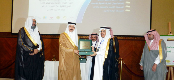 من جانبه، أشار المدير العام للتربية والتعليم بالأحساء رئيس المجلس الإداري للمركز، الأستاذ أحمد بالغنيم، إلى أن مجال الدورة الثالثة يأتي تحت شعار (تعزيز القيم الوطنية)، حين دعا لها خادم الحرمين الشريفين - حفظه الله - لحماية أبنائنا وبناتنا، ولتحقيق ولائهم لوطنهم، كما دعا لها أيضاً صاحب السمو الملكي الأمير خالد الفيصل وزير التربية والتعليم. بعد ذلك كرم صاحب السمو الأمير بدر بن جلوي، محافظ الأحساء، المدارس الفائزة، وهي (مدرسة أم القرى الثانوية بالجبيل الصناعية، مدرسة ديوان المعارف الابتدائية الأهلية بالأحساء، المتوسطة التاسعة والعشرون بالدمام والمتوسطة الرابعة بالمبرز).