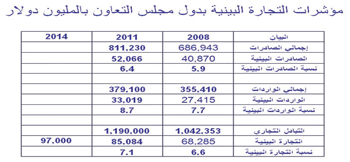 ولكن السؤال الذي يطرح نفسه، هل تمت ترجمة هذه الاتفاقيات على الأرض على قدر أهميتها؟.. يوضح الجدول (2) أنه رغم التطور الكبير في حجم التجارة البينية بين دول المجلس (وصل إلى 97 مليار دولار في عام 2014م)، إلا إن نسبة هذه التجارة البينية إلى إجمالي التبادل التجاري لدول المجلس (الذي يتجاوز حالياً 1200 مليار دولار) لم تصل إلى مستوى التوقعات (لم تزد عن 8%). وبالتالي، فإن ترجمة عمليات التكامل الاقتصادي بين دول المجلس رغم تعدد اتفاقياتها، ورغم آليات عملها والتي تبدو مكلفة في حد ذاتها، إلا إنها لم تحقق على الأرض ما تصبو إليه حكومات وشعوب هذه الدول.